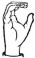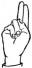 На ћирилици написано СЕРГЕЈ ШЋЕЛОВИЋ састоји се из 14 слова [?]. Исписано ћириличном једноручном азбуком за глувонеме: